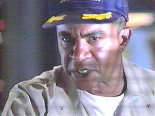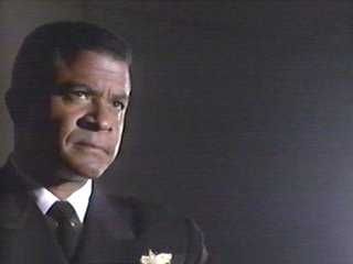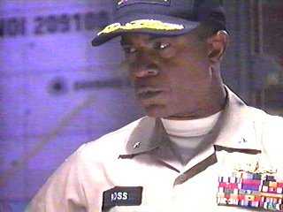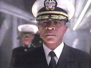 The commander of the U.S.S. Saratoga is Commodore Glen Ross. On the command deck, he is a straight-talking,